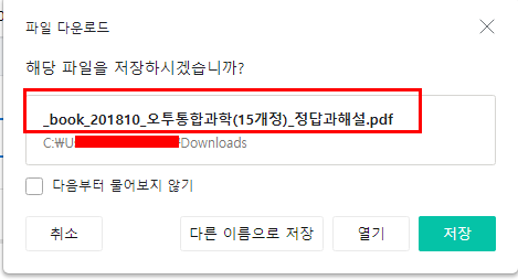 열기를 누르거나 바로 볼수 있고, 저장을 누르면 내컴퓨터에 오투 통합과학 답지가 저장이 된다.