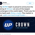 오늘의 코박 커뮤니티 1일 상승률 코인은 크라운코인 이였습니다. 아침에만 어제까지 200원초반대로 횡보하다가 오늘 아침에 반짝 신호가 오더니 오전에만 두배 600원을 돌파하더니 최고 700원대까지 찍고 현재는 500후반대를 유지 하고 있습니다. 아침에도대체 크라운코인이 뭐길래 이렇게 펌핑이 된것일까요? 와~ 이런건 도대체 어떻게 알수 있고 왜이렇게 펌핑이 되는 것일까요 ??바로 바로 국내 최대 코인 거래소 업비트 BTC 마켓에 상장되는 호재가 아닐까 합니다. 크라운 코인인란?크라운은 사용자가 새로운 이코노미 애플리케이션을 개발하고 운영할 수 있는 환경을 제공하는 블록체인 응용 프로그램 플랫폼입니다. 크라운 플랫폼은 이 인프라를 이용하여 법적 구속력이 있는 계약과 스마트 컨트랙트가 함께 이행되게 합니다. ..